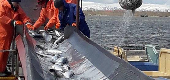 この時点では、紅鮭以外の魚種も一緒に水揚げされます。