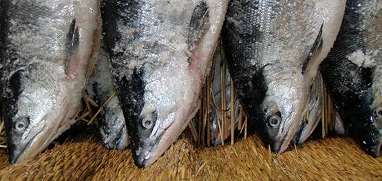 数日間漬込むことにより余計な水分が脱水され身が締り一般に出回っている漬込みの塩紅鮭より濃厚な味わいとなります。