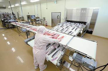 大量生産にも対応できる、国内トップクラスの大型真空装置を備えたフィレー専用の包装機。