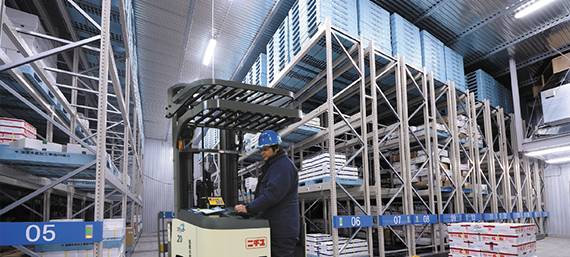 下された原料は、トラックへと積み込まれ、そのまま冷蔵庫へと運ばれて規格の選別をし保管されます。