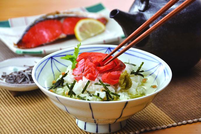 5、ご飯にお好みの具材を乗せて冷たい水やお茶、だし汁を注いだら完成です。